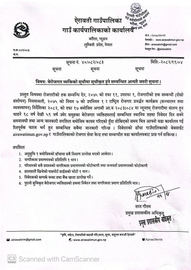 बेरोजगार व्याक्तिको सूचीमा सूचीकृत हुने सम्बन्धी सूचना, सम्बन्धीत सबैको जानकारीको लागि।