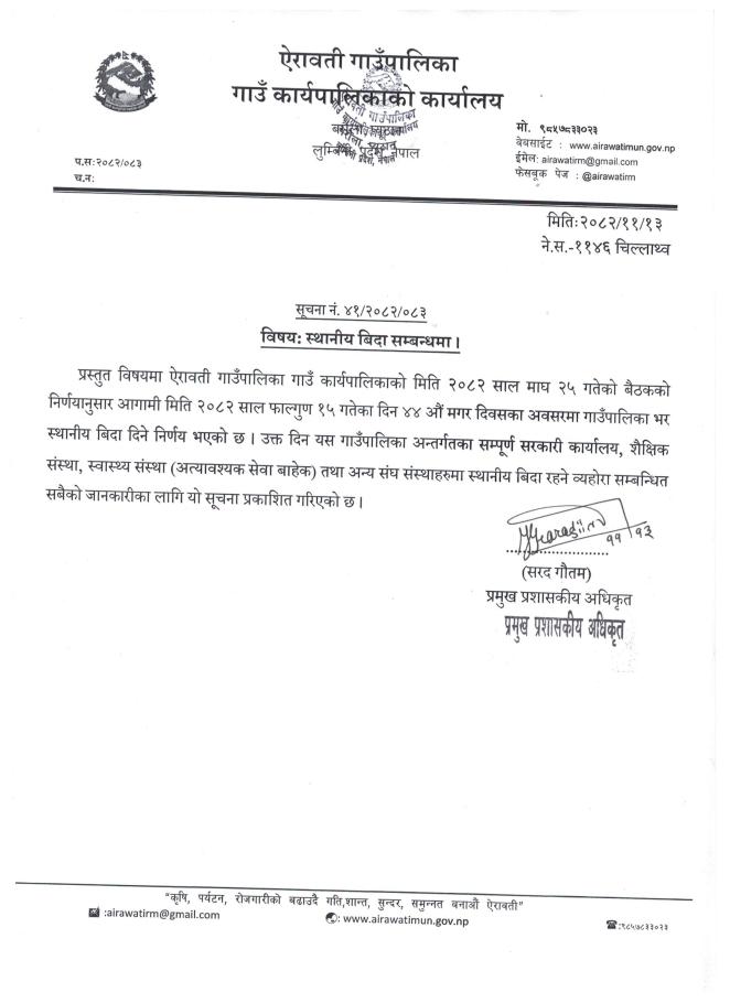 » सार्वजनिक विदा सम्बन्धी सूचना ।।