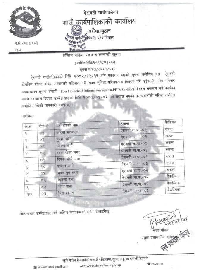 तथ्याङ्क संकलक पदको अन्तिम नतिजा प्रकाशन गरिएको सम्बन्धमा ।