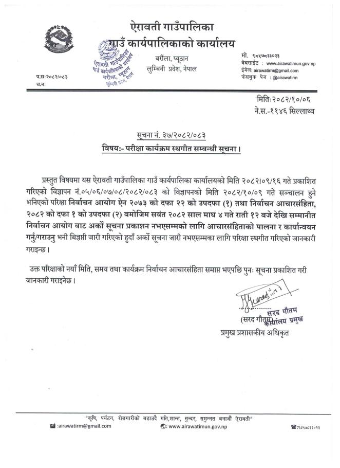 परिक्षा कार्यक्रम स्थगित गरिएको सम्बन्धी सूचना ।।।