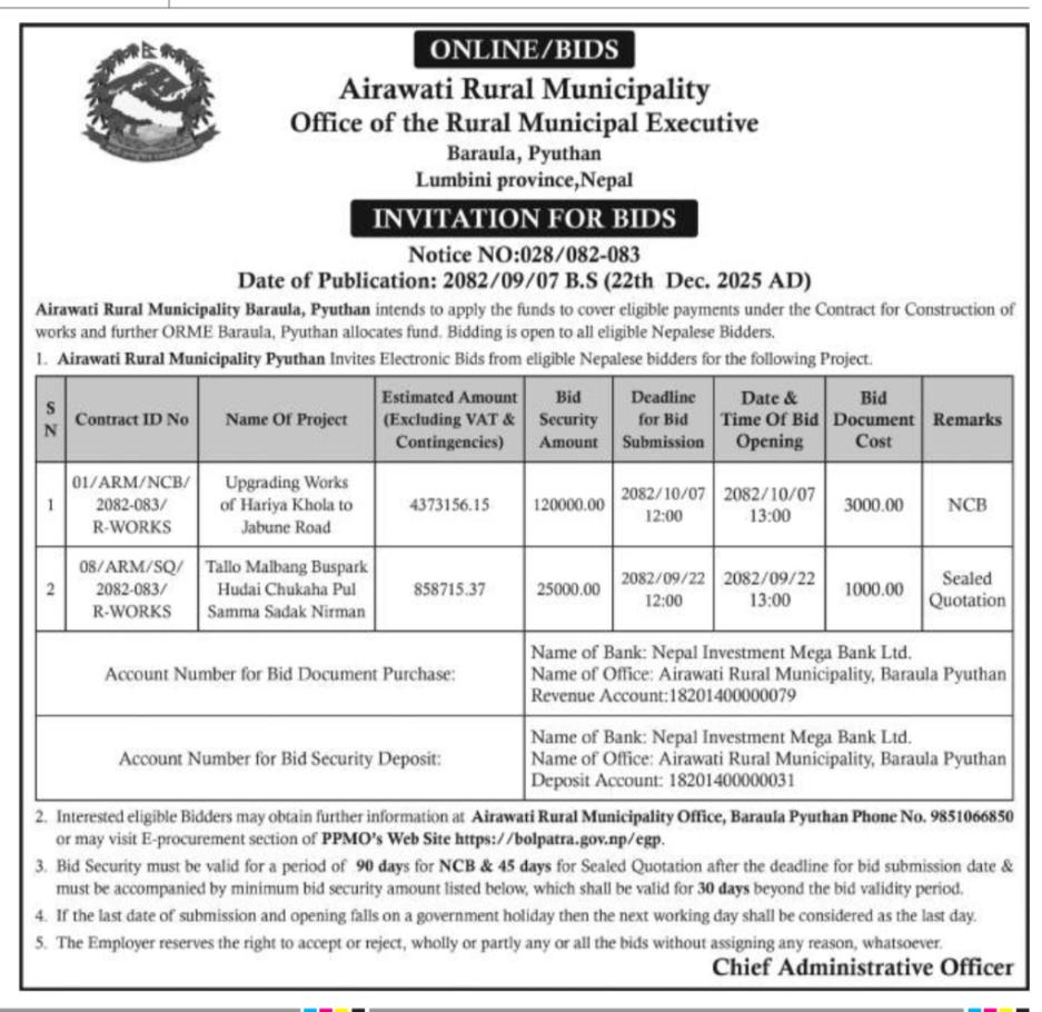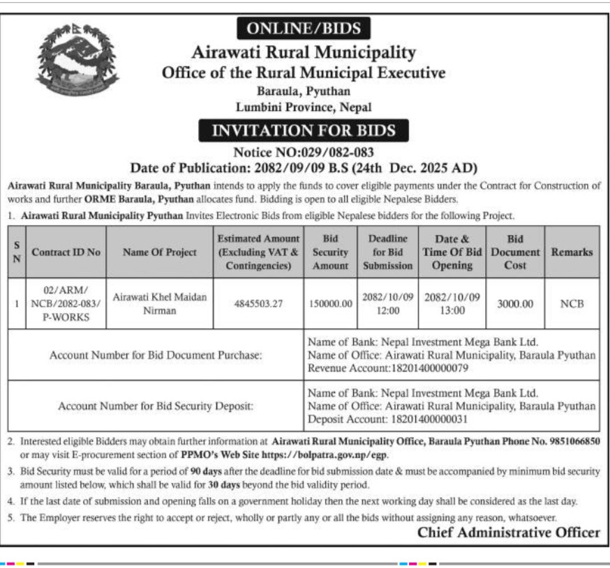 INVITATION FOR BIDS FOR AIRAWATI KHEL MAIDAN NIRMAN