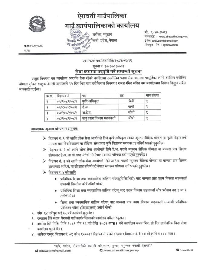 करार सेवामा पदपुर्ती गर्ने सम्बन्धी सूचना ।